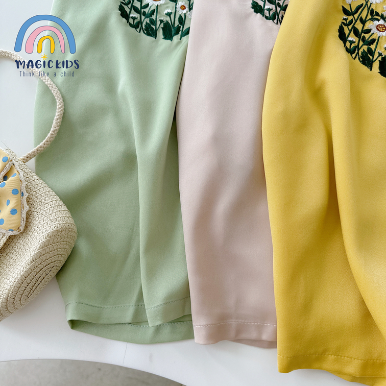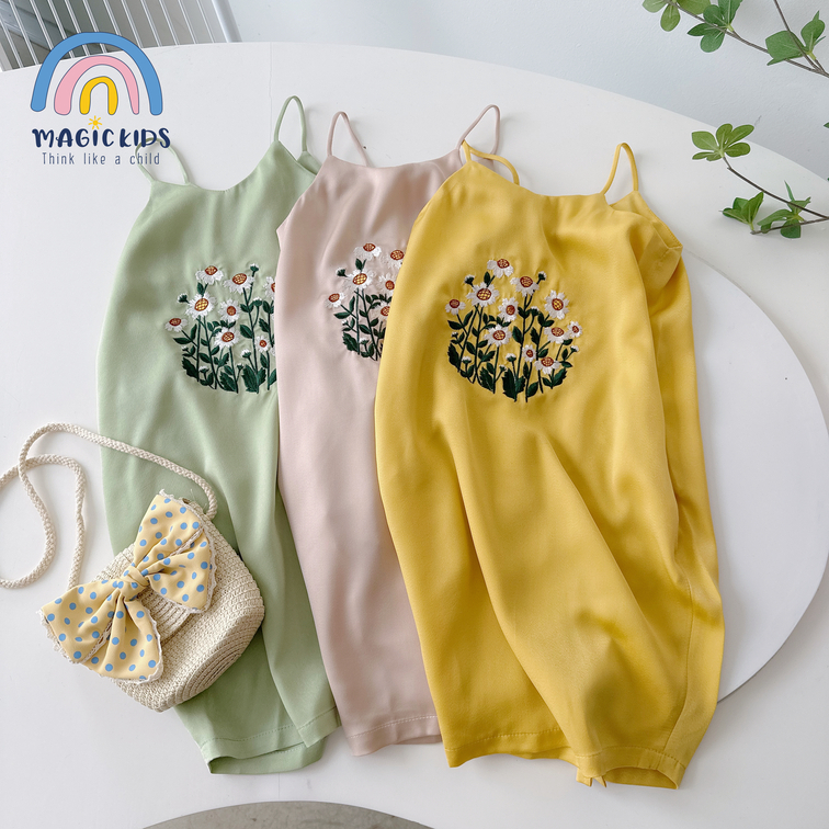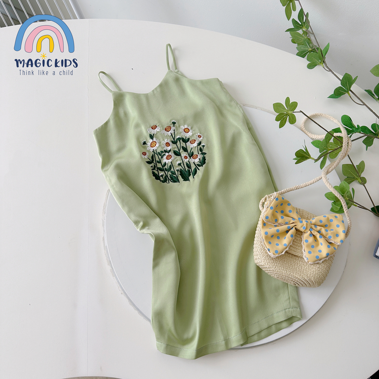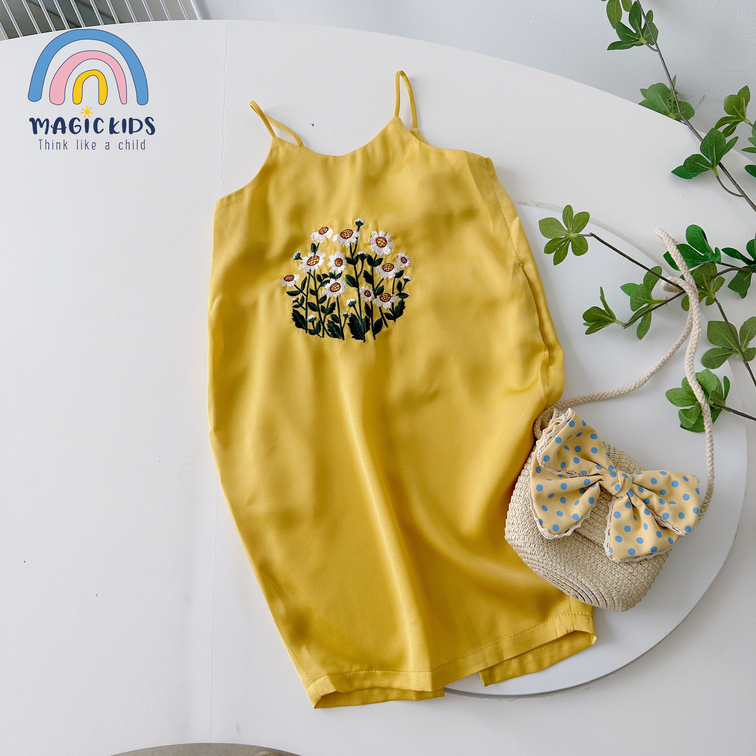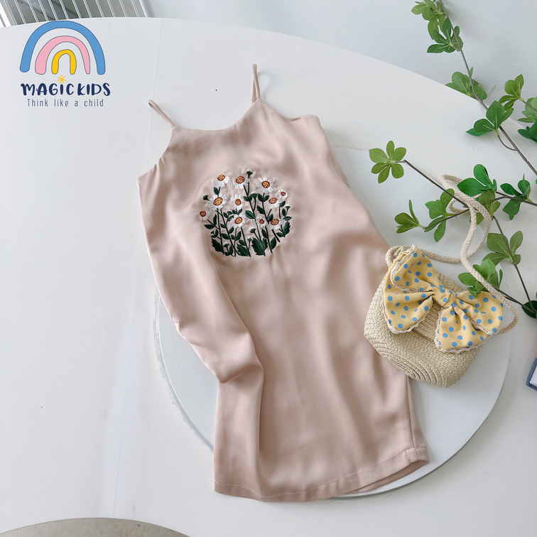 Đầm váy 2 dây cho bé gái từ 2 3 4 5 6 7 8 tuổi Magickids thêu hoa lụa ngọc trai mềm mịn phong cách tiểu thư VA23001