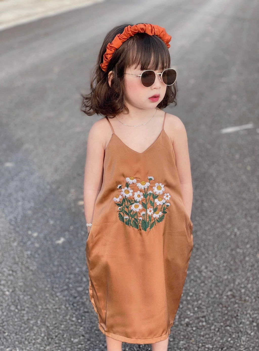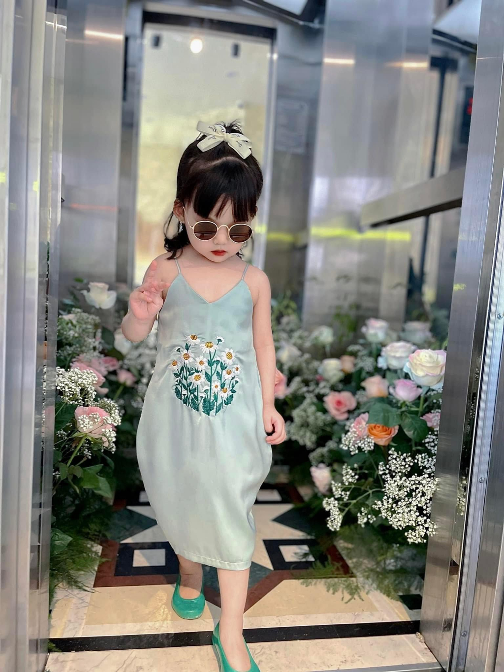 - Tên sản phẩm: Đầm váy 2 dây cho bé gái từ 1 2 3 4 5 6 7 8 9 10 tuổi Anniebaby thêu hoa lụa ngọc trai mềm mịn phong cách tiểu thư VA23001